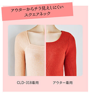 ・ネック形状はアウターからチラ見えしにくいスクエアネック