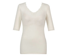 ・前上辺、前脇上辺にレースをあしらった、着こなしをより楽しめるアイテム